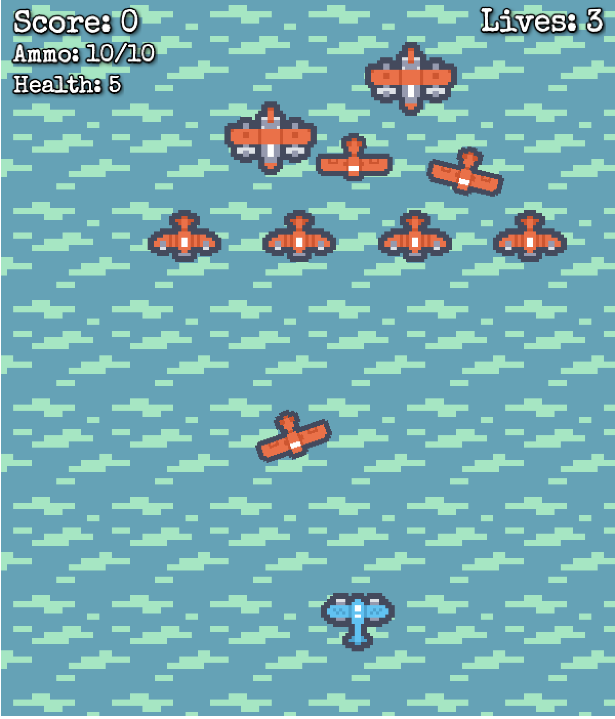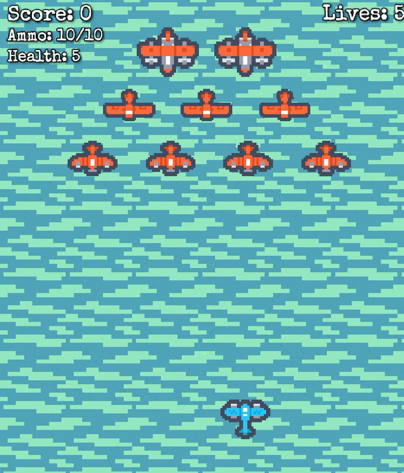 Zero Down is a top-down gallery shooter set during the Battle of Midway. The player pilots an American aircraft tasked with shooting down waves of incoming Japanese planes while dodging enemy fire. I designed and implemented core gameplay systems, including smooth player controls, bullet mechanics, and enemy behavior. The game features enemy planes capable of tracking the player’s position and difficulty scaling to keep the action challenging and engaging.